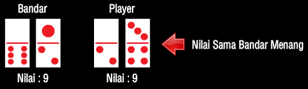 Jika nilai kartu pemain dan bandar sama, maka pemenangnya adalah bandar :